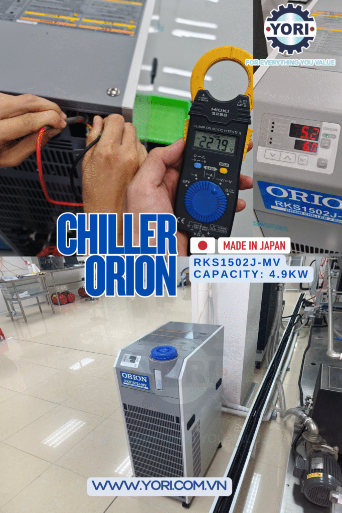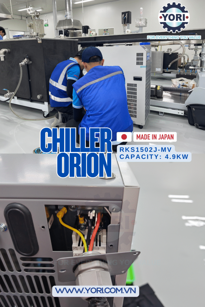 Lắp Đặt Chiller ORION RKS1502J-MV Tại Việt Nam – Giải Pháp Làm Lạnh Chính Xác Từ YORI phục vụ công tác giải nhiệt cho thiết bị cao cấp yêu cầu độ nước lạnh chính xác và ổn định .
